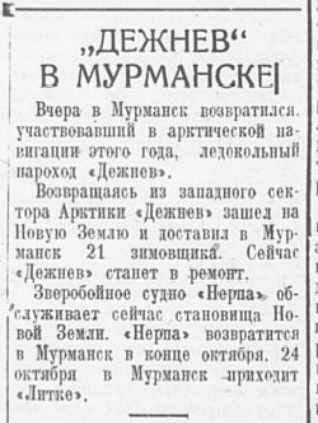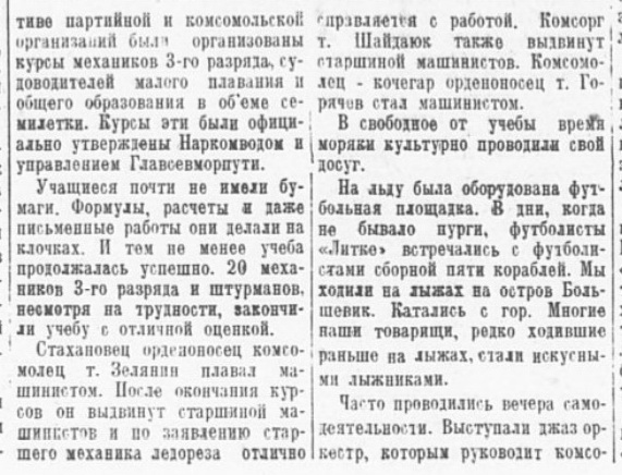 В беседе с вашим корреспондентом командир корабля тов. Вершинский рассказал о труднейшем северном походе, совершенном экипажем судна.