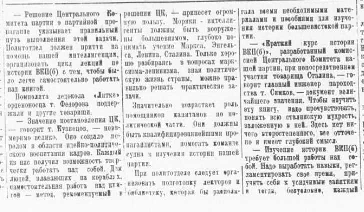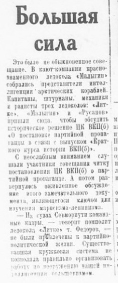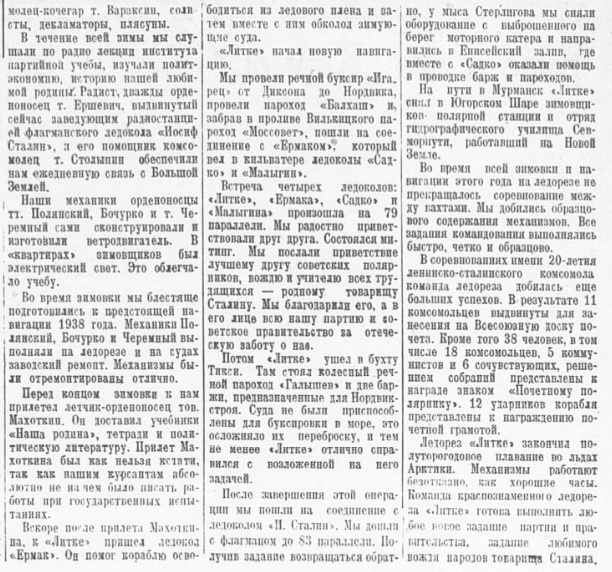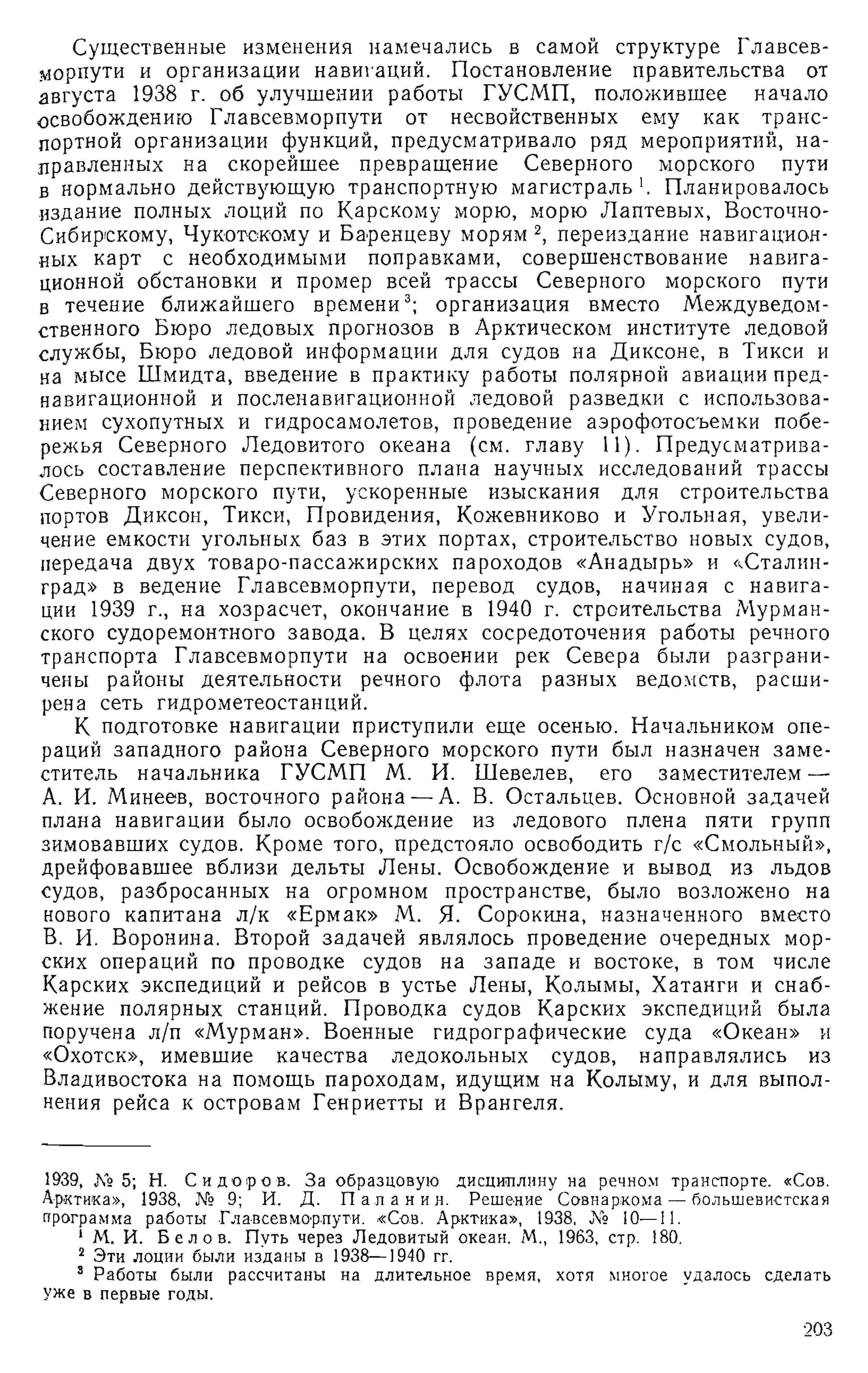 1939, № 5; Н. Сидоров. За образцовую дисциплину на речном транспорте. «Сов. Арктика», 1938, № 9; И. Д. Папанин. Решение Совнаркома — большевистская программа работы Главсевморпути. «Сов. Арктика», 1938, № 10—11.
