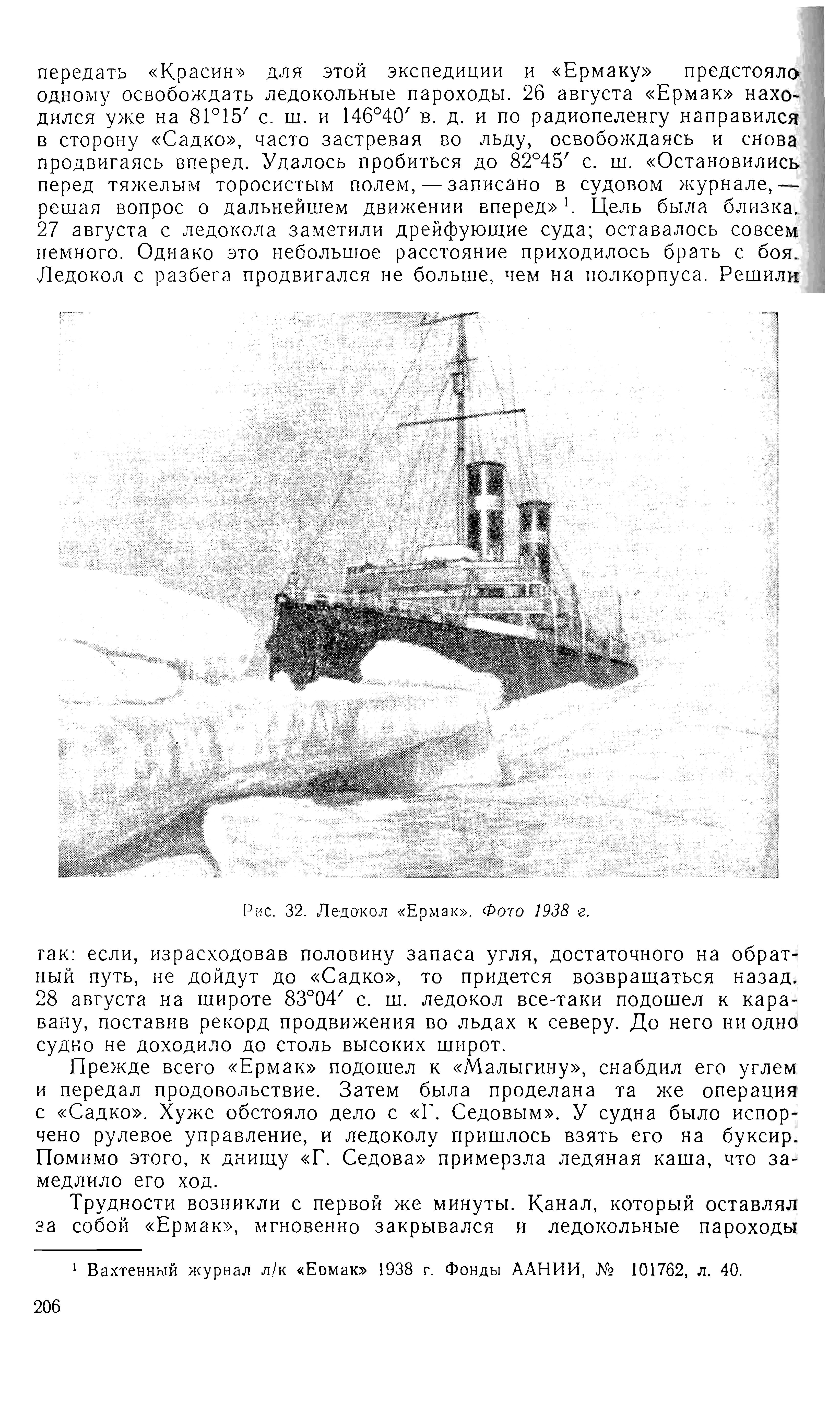 {1} Вахтенный журнал л/к «Ермак» 1938 г. Фонды ААНИИ, № 101762, л. 40.