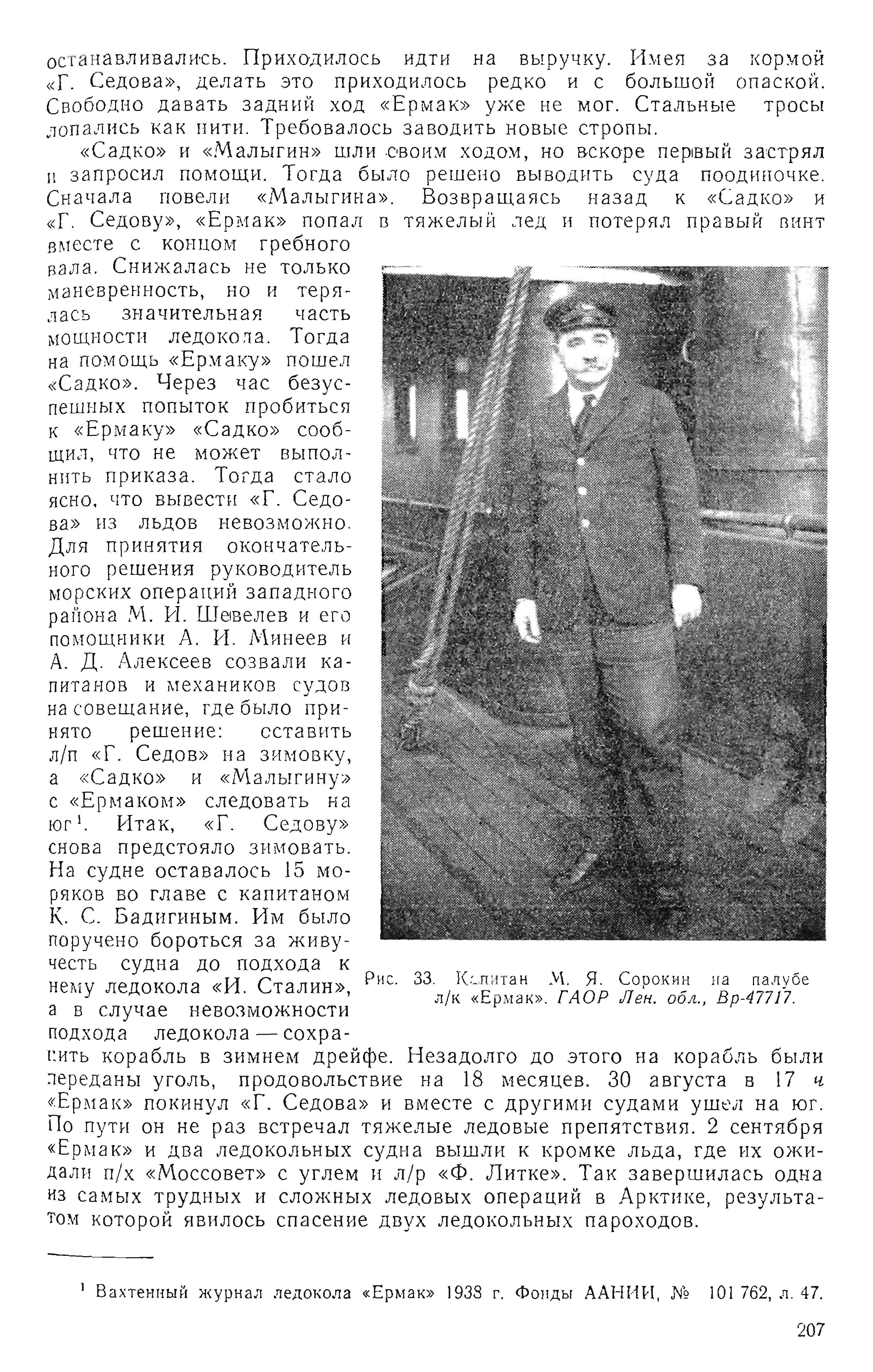Рис. 33. Капитан М. Я. Сорокин на палубе л/к «Ермак». ГАОР Лен. обл., Вр-47717.