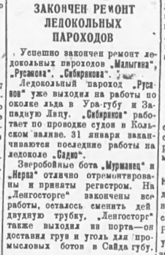 Ледовые условия в этом году были настолько тяжелые, что нам пришлось вернуть из пути несколько кораблей, шедших с грузом для строительства Нордвикских соляных рудников. Это мероприятие позволило сосредоточить ледокольные силы на проводке сквозных судов и караванов к устьям Лены и Колымы. Задания эти целиком выполнены значит — выполнены задания партии и правительства — провести корабли с запада на Восток Северным морским путем. Эти корабли уже находятся в строю и в полной исправности.