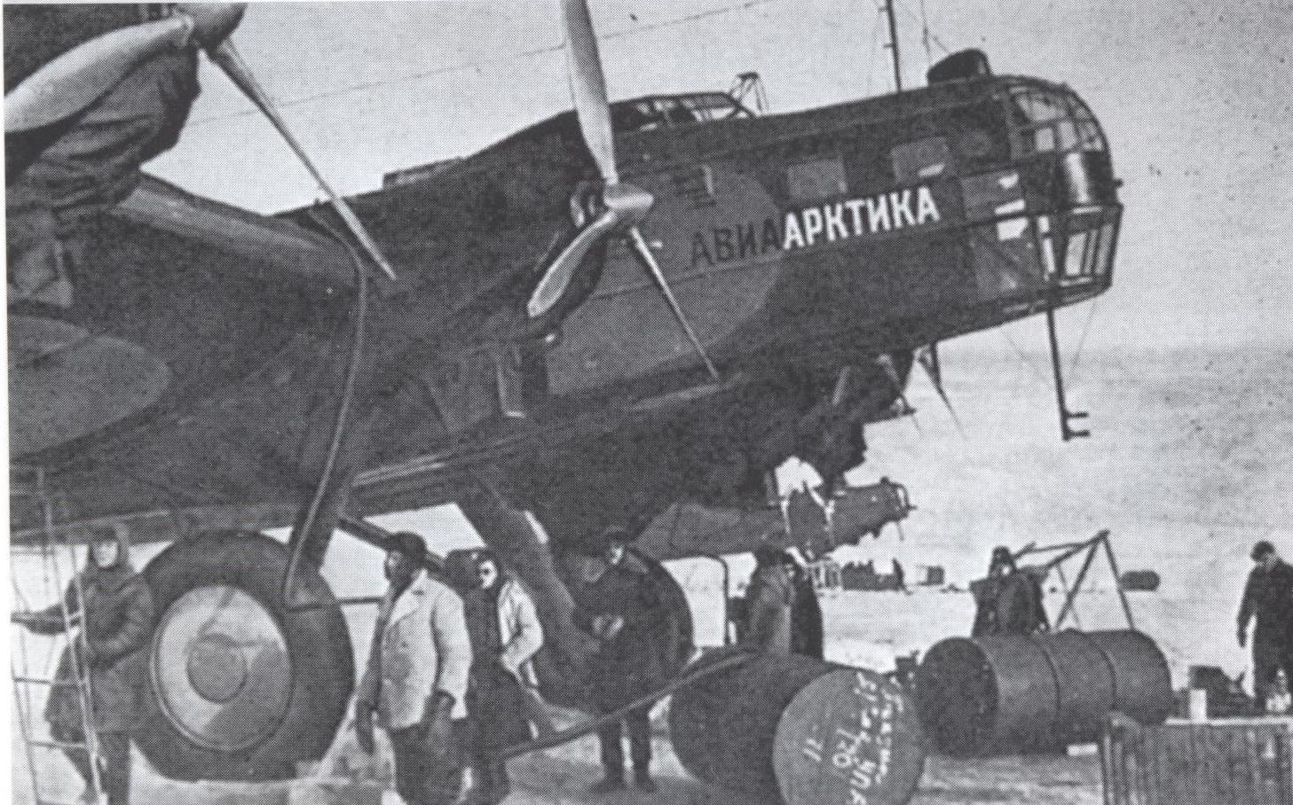 Потом АНТ-6 СССР-Н172 периода февраля-марта 1938 года на вывозке пассажиров "Садко", "Малыгина" и "Седова", следом неидентифицированный (слишком много вариантов) полярный Г-1 (просматривается вымпел на киле), и напоследок АНТ-6 СССР-Н170 того же периода, что и вышеупомянутый Н172.