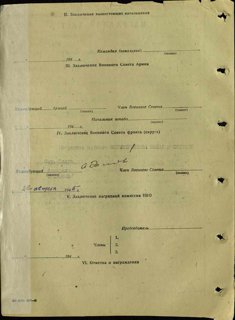 Представление на награждение №: 57 от: 27.08.1945 СФ