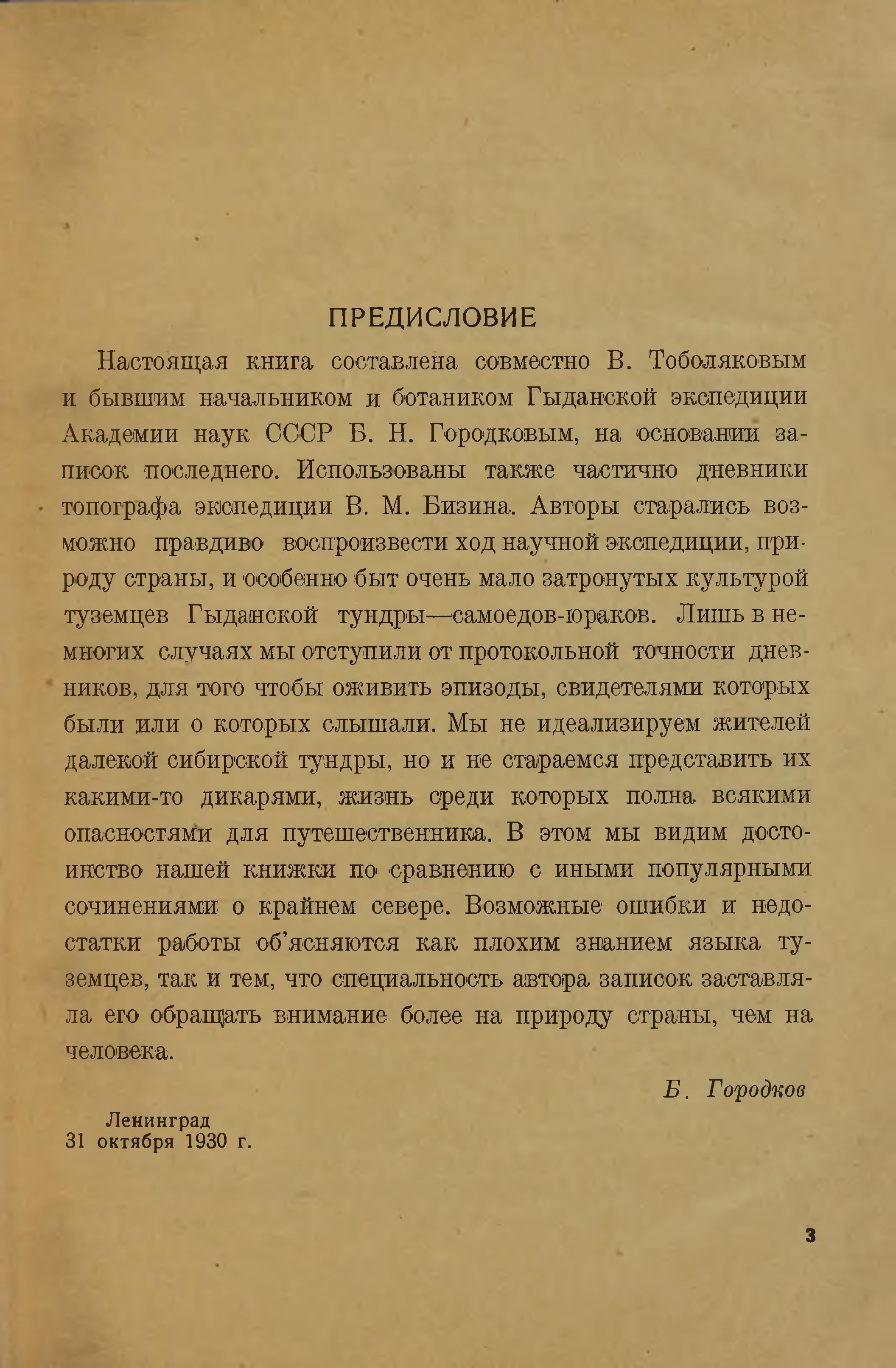 Б. Н. Городков — крупный геоботаник и географ, выдающийся исследователь Крайнего Севера Советского Союза. За 40 лет своей научной деятельности он посетил и изучил многие районы Арктики и севера Советского Союза от Кольского полуострова до Чукотки, а также и острова Северного Ледовитого океана.