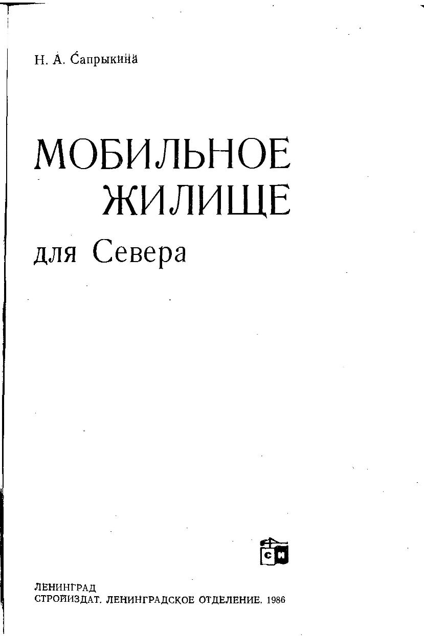Сапрыкина Н.А., Мобильное жилище для Севера. Л.: Стройиздат 1986