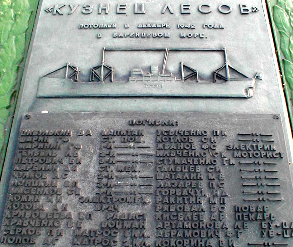 В КНИГЕ «СОВЕТСКИЙ ТРАНСПОРТ в Великой Отечественной войне» (М., Воениздат, 1989, с. 304) военный историк Б. Вайнер рассказывает, как осенью 1942 г. с Советского Севера на запад шел союзный конвой, в составе которого находились шесть наших транспортных судов. Автор пишет: «Теплоход «Кузнец Лесов» (капитан В. А. Цибулькин) не дошел. Причина и место его гибели не установлены. По некоторым свидетельствам того времени, катастрофа произошла в районе острова Медвежий. Можно предположить, что теплоход и его команда погибли в результате нападения противника, чему способствовал свирепствовавший в те дни шторм».