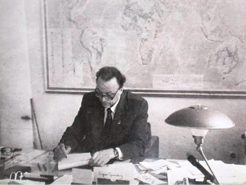 Директор ВНИИОкеангеологии И.С. Грамберг в своем кабинете