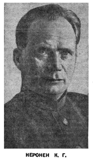 За это время (в 1930 году) К. Неронен вступил в ряды коммунистической партии Ленина — Сталина. Но это было, так сказать, официальное оформление Карла Густавови-