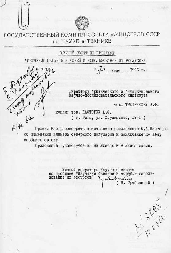 Этот документ был найден в анналах Арктическиого и Антарктического научно - исследовательского института (ААНИИ) и посвящён, немного немало, планам ликвидации ледового покрова Арктики. Это круче, чем проект "поворота северных рек". Впереди у товарищей был героический штурм природы! Простое до "гениальности" предложение товарища Пасторса об изменении климата на всём северном полушарии, об огромном экономическом и экологическом эффекте и о скорейшем построении коммунизма. 33 страницы печатного текста и 3 картинки. Поучительно для широкого круга "венцов эволюции" и "хозяев природы" и, просто забавно.