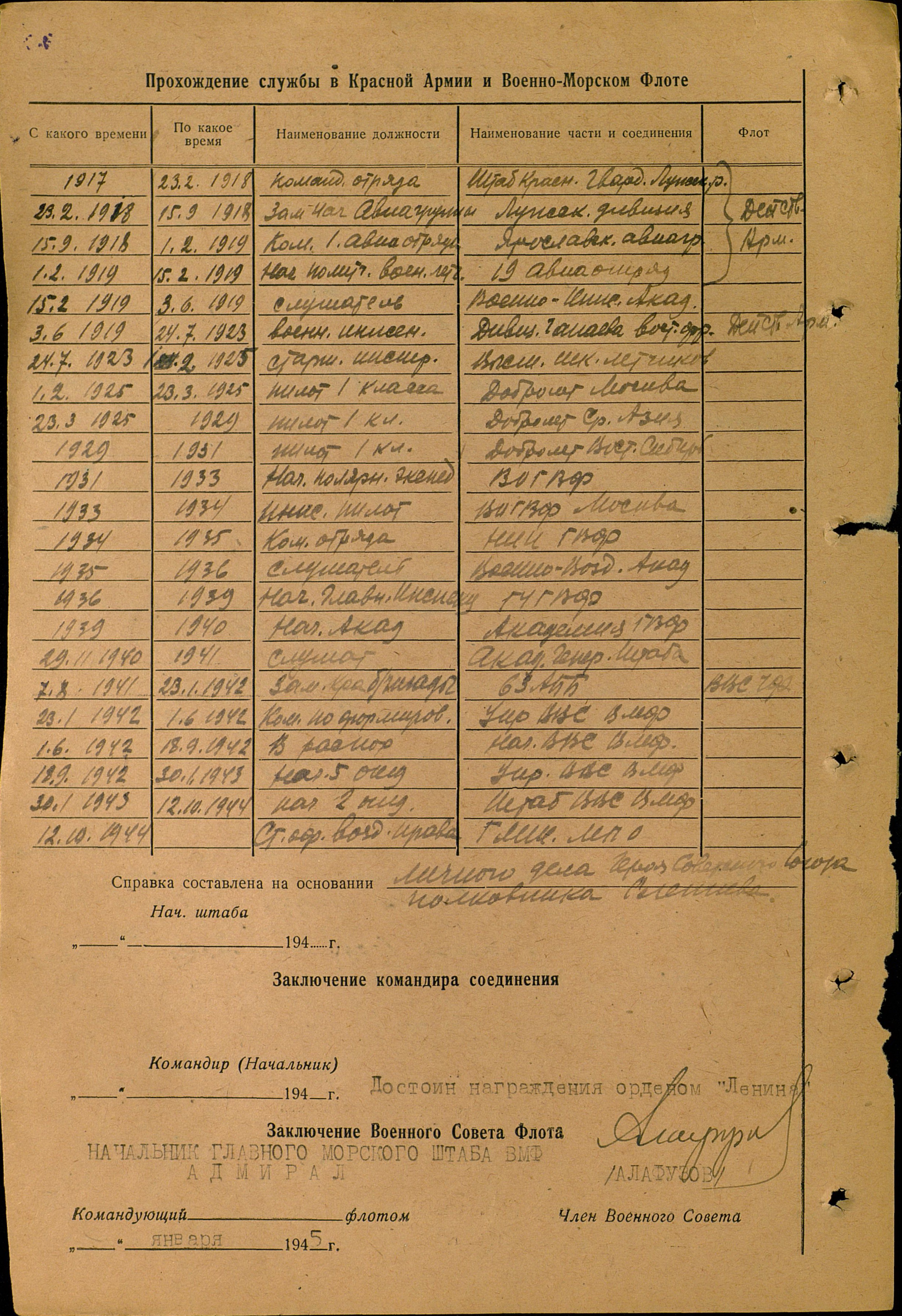 в РККА с 23.02.1918 годаПриказ или указ: Архив ЦВМА фонд 3 опись 1 единица хранения 1202