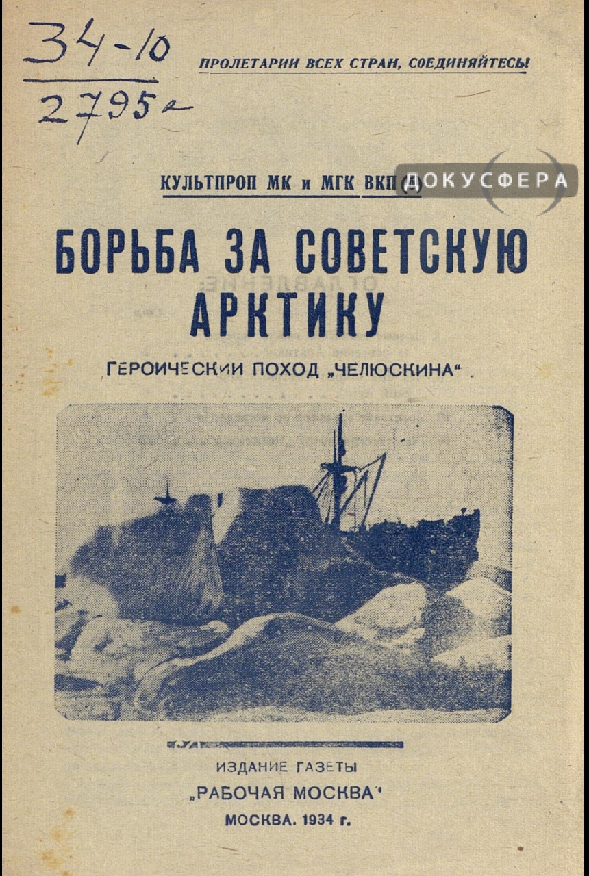 "Борьба за Советскую Арктику. Героический поход "Челюскина" - М.: Изд. газеты "Рабочая Москва", 1934. — 16 с.