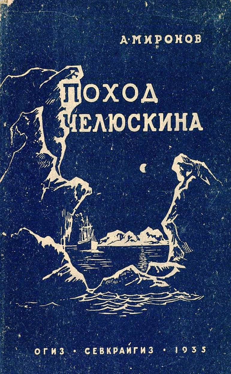Миронов А., "Поход "Челюскина" - 2-е изд., испр. - Архангельск: Севкрайгиз: 1935 (Вологда: тип. "Сев. печатник"). - Переплет, 180, [2] с., 1 с. объявл., 1 вкл. л. карт.: ил.