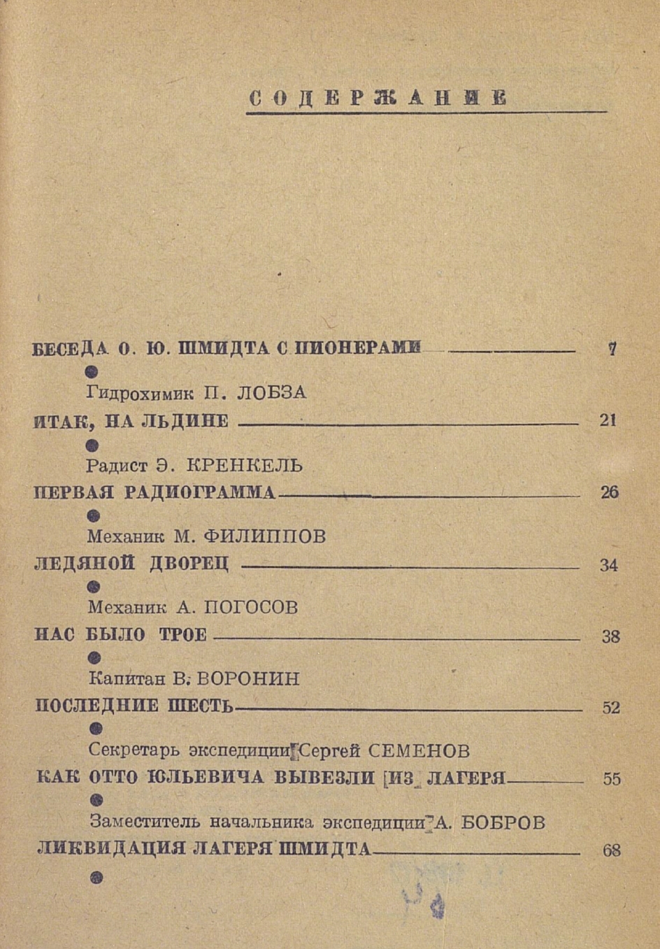 „Челюскинцы-северяне" и „Самолеты" написаны А. Е. Ми р о н о в ы м . „Один день"—В. М. С и н ц о в ы м , „Два месяца на льдине" — старшим помощником капитана С. В. Г у д и н ы м.