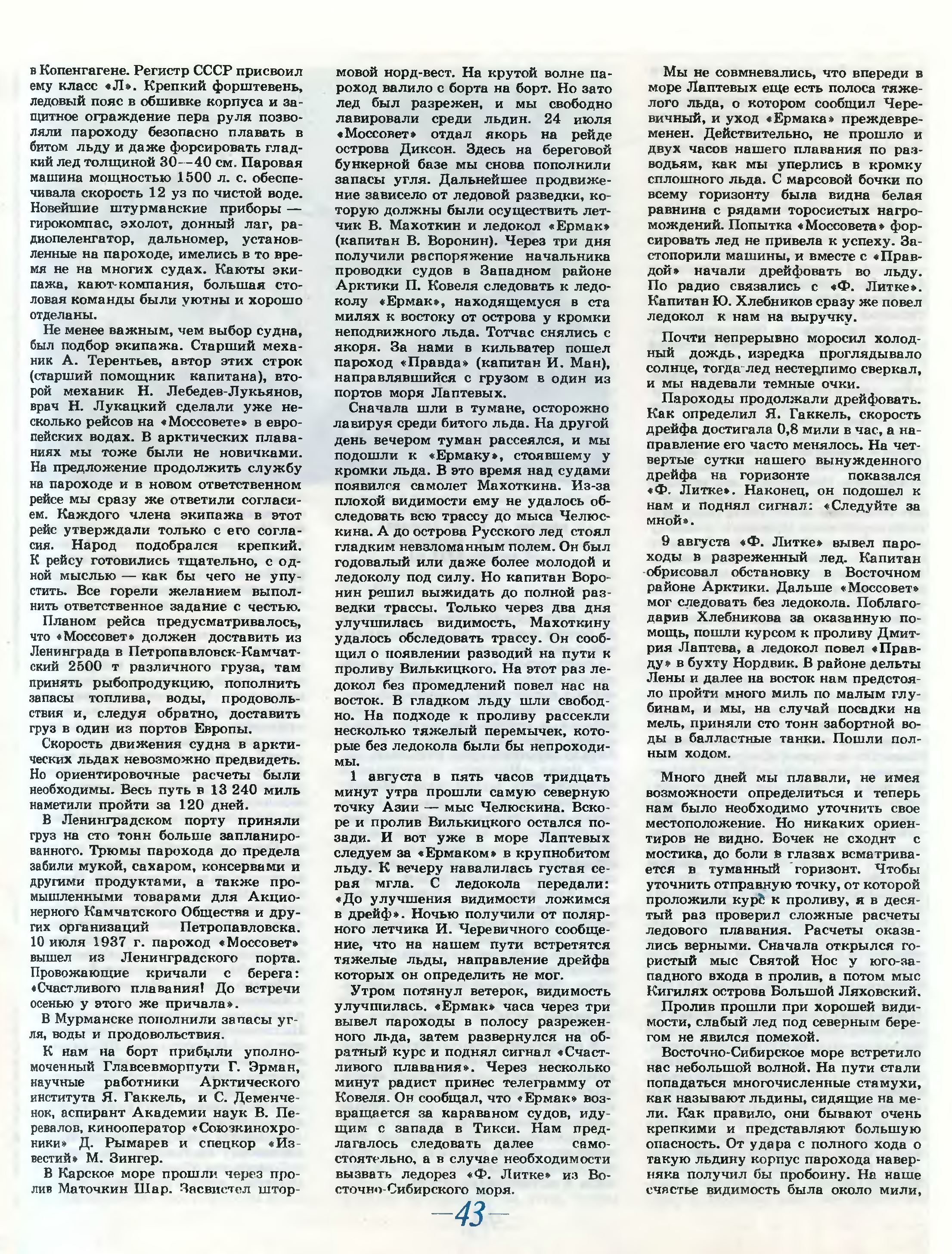 Плавание по Северному морскому пути в 1937 —1939 гг. влило в нас уверенность, что сквозные проходы в обоих направлениях в одну навигацию вполне возможны при надлежащей организации работы ледоколов на отдельных участках трассы.
