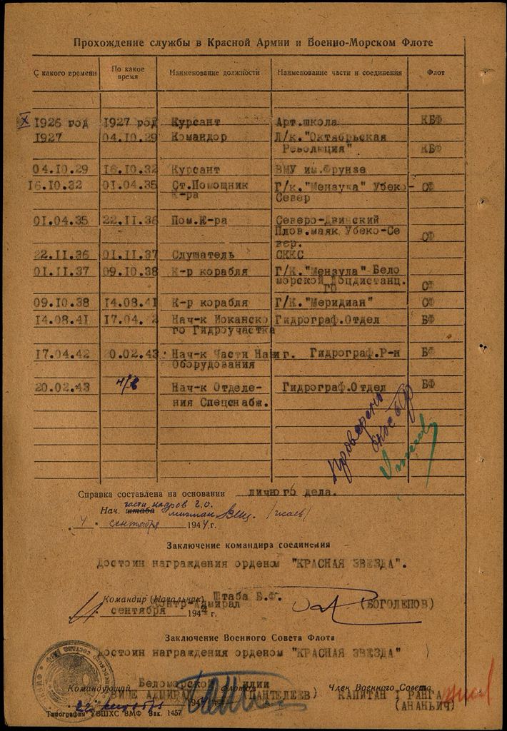 Наградной лист на старшину кочегаров Линника Артема Игнатьевича