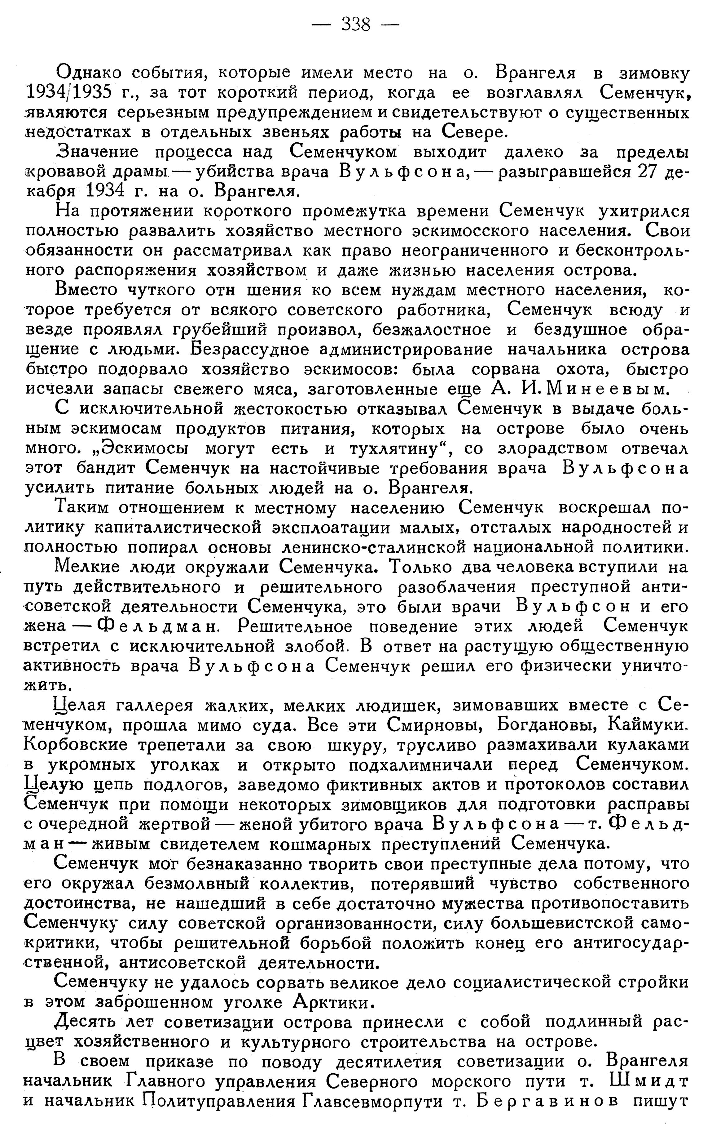 Значение процесса над Семенчуком выходит далеко за пределы кровавой драмы — убийства врача Вульфсона, — разыгравшейся 27 декабря 1934 г. на о. Врангеля.