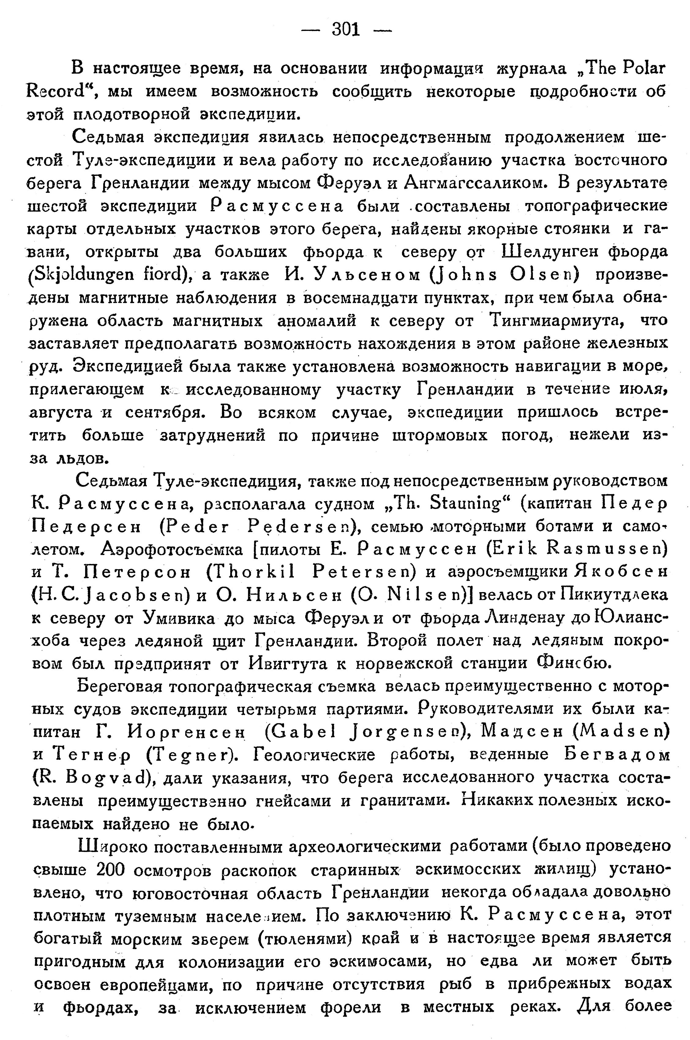 4) Название Туле-экспедиции принято вследствие того, что эти предприятия Расмуссена частично были организованы на средства станции в Туле.