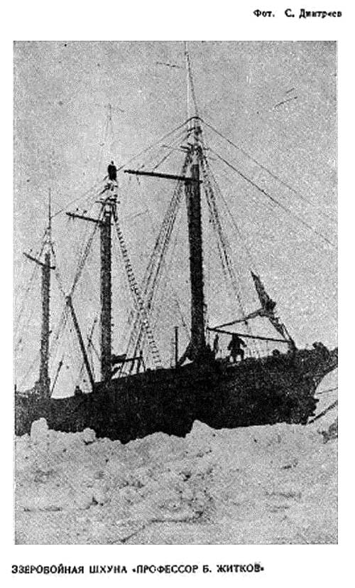 Так выглядела наша шхуна, названная в честь исследователя Я-Мала, профессора Б. Житкова, изучавшего древний путь новгородцев к устьям Оби и Таза, зверобойная шхуна, предназначавшаяся для полярного плавания и полярной зимовки у берегов Сибири. Было ли здесь сознательное вредительство — очень интересный вопрос, по-моему...