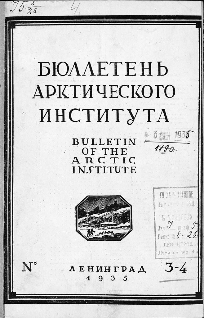 Бюллетень Арктического института СССР. № 3-4. -Л., 1935