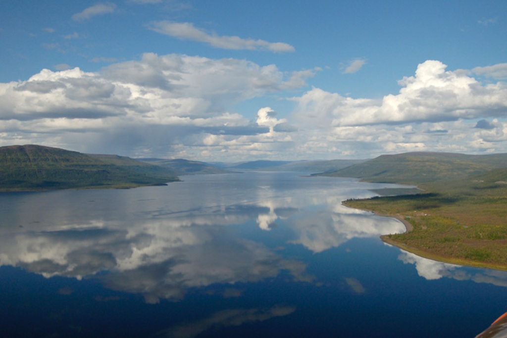 Эвенкия, плато Путорана, озеро Някшингда. Крохотная точка на правом берегу – ТДС Агата