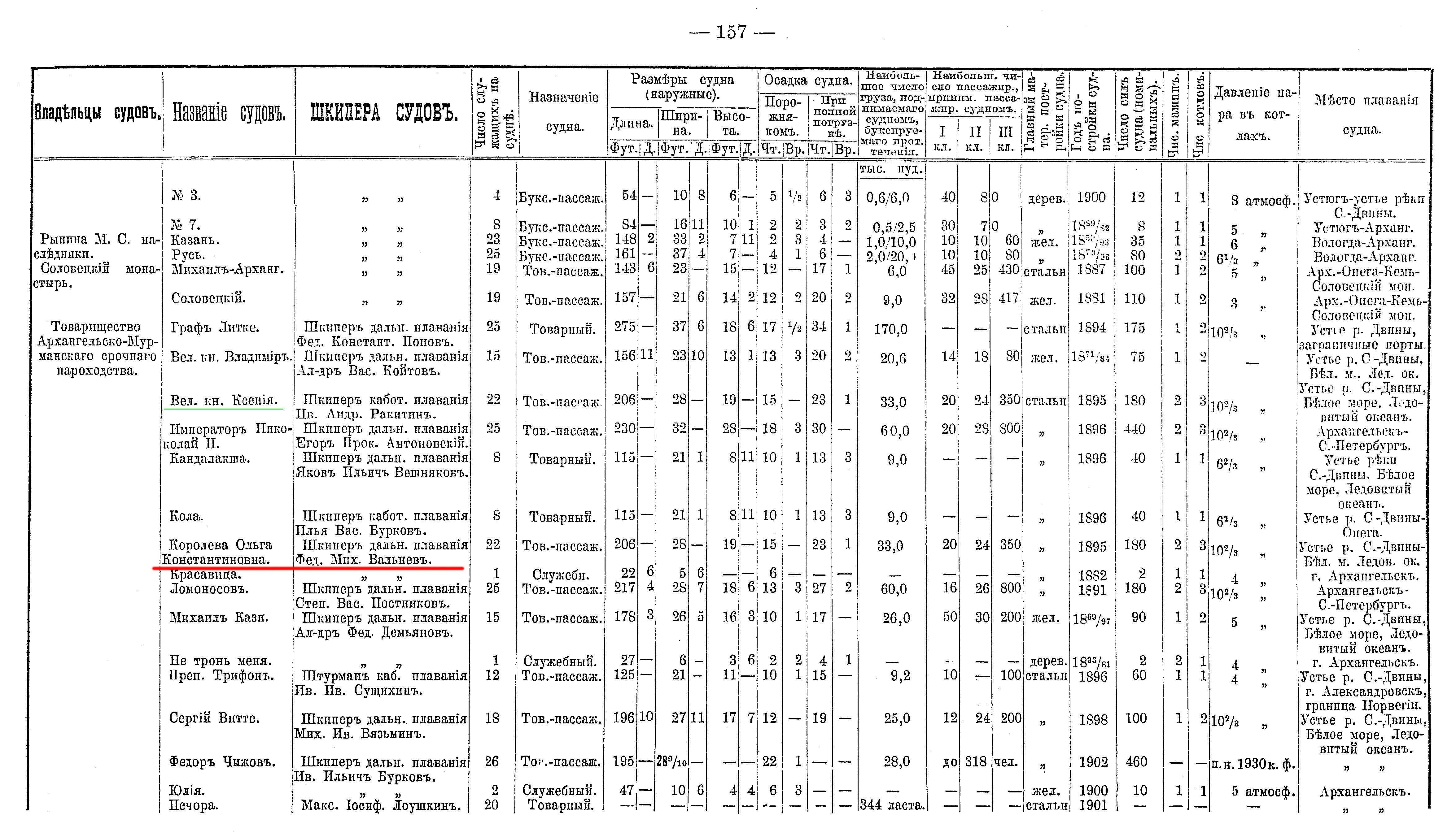 В 1896 г. на знаменитой верфи Уильяма Добсона (Англия) для Товарищества Архангельско-Мурманского срочного пароходства (ТАМСП) построили товаро-пассажирский пароход «Королева Ольга Константиновна».