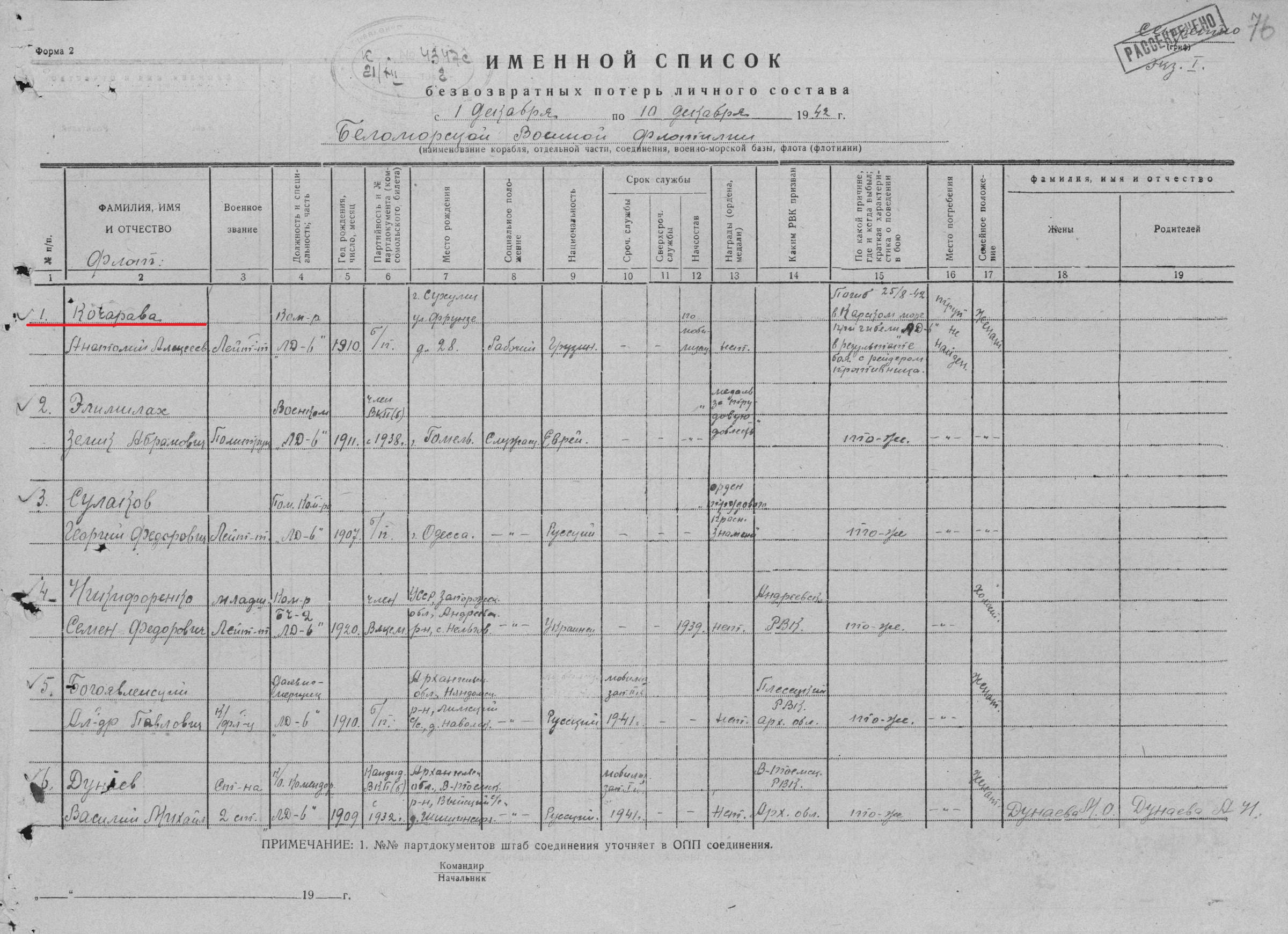 В первом списке под номером 5 Указан Башлыков Николай Георгиевич, а во втором (и в документах) его фамилии нет. Что это означает. Это родной брат моей бабушки. Подскажите пожалуйста.
