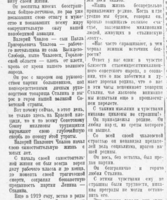 Командир экипажа В.П. Чкалов рассказывает о подготовке к полету, подробно повествует о самом рейсе, делится воспоминаниями о встречах с людьми после полета.