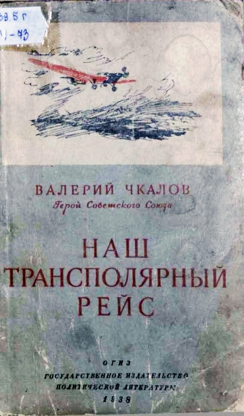 Чкалов В.П., Наш трансполярный рейс. Москва — Северный полюс — Северная Америка. — М.: ОГИЗ; Государственноеиздательство политической литературы, 1938. — 64 с.