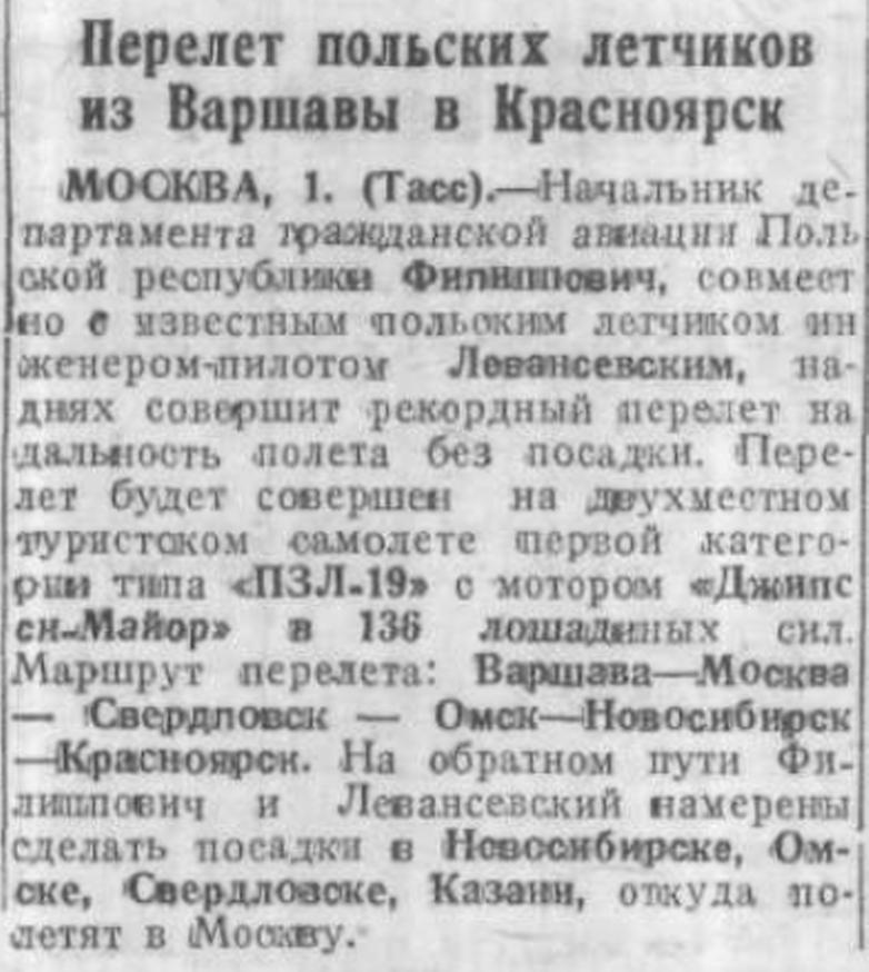 ЛИНДБЕРГ ПРИЛЕТЕЛ В СССРТрансатлантический перелет — Нью-Йорк — ЛенинградЛЕНИНГРАД, 22. Известный американский летчик Чарльз Линдберг прилетел на своем самолете «Локхид-Сириус». Линдберг закончил трансатлантический перелет по маршруту: Нью-Йорк — Гренландия — Исландия — Фарерские острова — Копенгаген — Карлскроне — Гельсингфорс — Ленинград. Его сопровождает жена, исполняющая на самолете обязанности радистки.