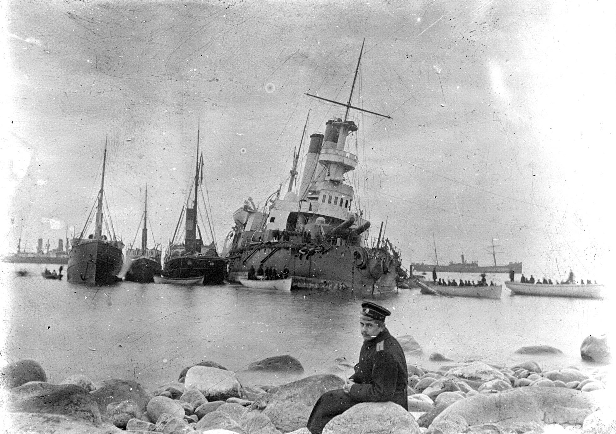 ЕРМАК на переднем плане Генерал-адмирал Апраксин на камнях, у о Гогланд-04.1900..jpg