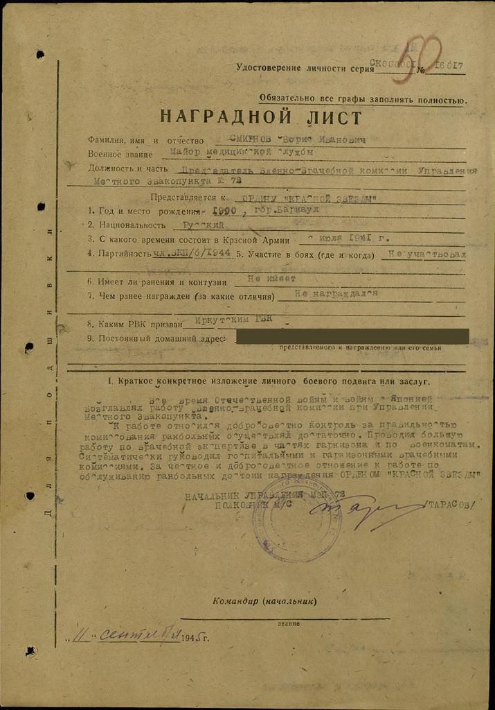 Фронтовой приказ № 74/н от: 14.10.1945 ВС Забайкальского фронта