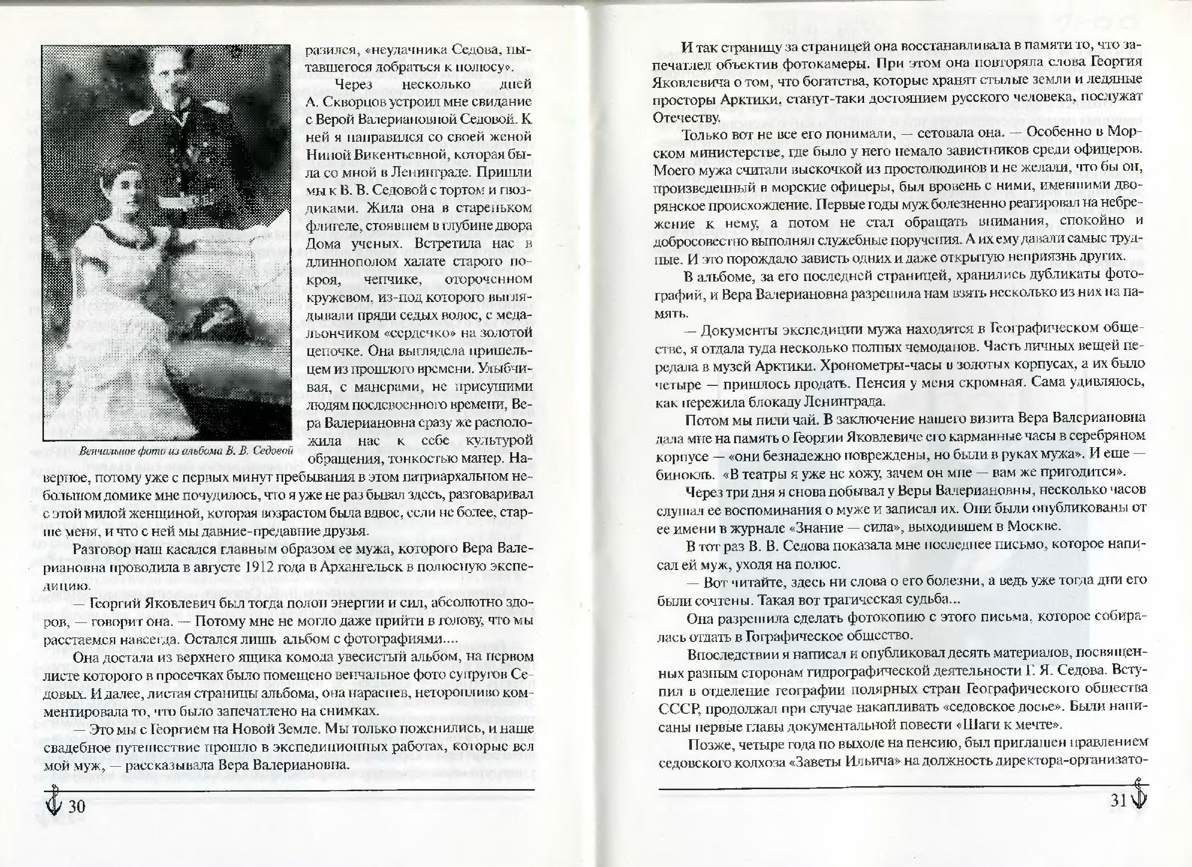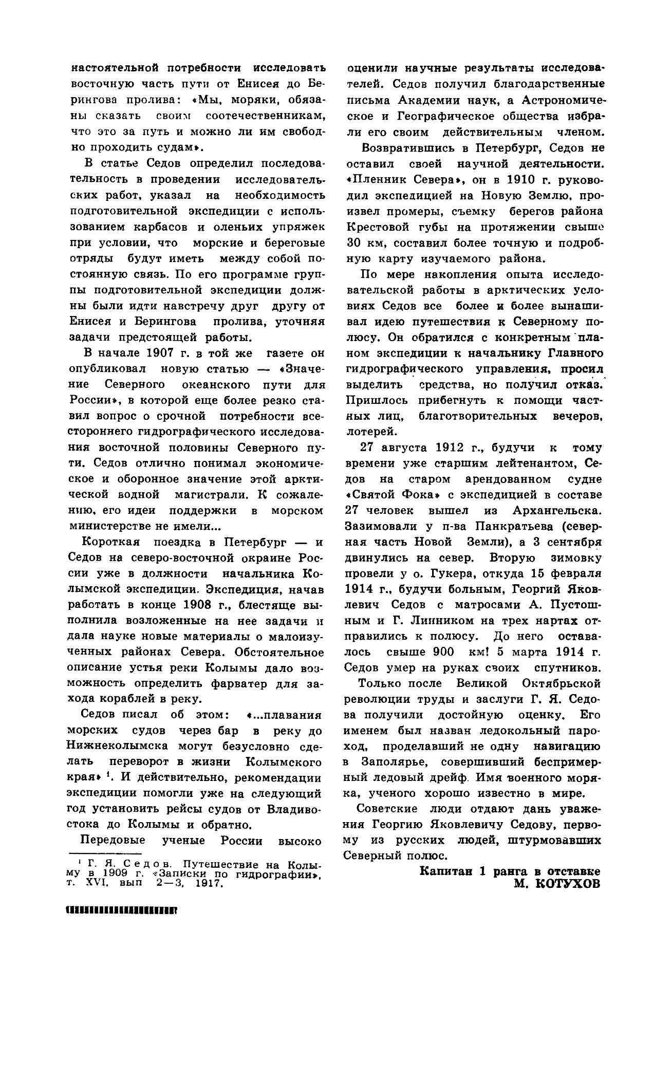 О нашей жизни, работе, находках на острове Рудольфа рассказано в коллективной книге зимовщиков полярной станции острова Рудольфа "На подступах к полюсу", выпущенной в 1941 г. Но вот через тридцать с лишним лет мне довелось прочитать дневники Седова, Линника и Пустотного в брошюре "Втроем на полюс", изданной "Известиями" в 1964 г., и я смог по-иному представить себе дни похода на полюс в феврале 1914 г.
