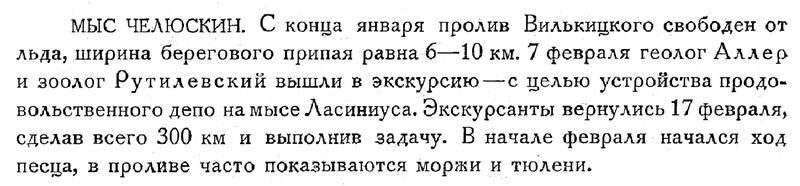 Ветер воет круглый год и сбивает с ног. Туманы бывают такие, что ничего не видно на расстоянии одного метра. Снегом дома заваливает под крышу. Второе – полярная ночь, это удивительное явление природы, когда из мира исчезает солнце. Ненадолго появляется сумрачная иллюзия дня, где-то за горизонтом виднеются обманчивые блики спрятавшегося солнца, и вскоре на застывшую в вечной мерзлоте землю опускается ночь. Ночь длится полгода, столько же – день. Просыпаешься - и тупо соображаешь, сколько сейчас времени: то ли шесть утра, то ли вечера, то ли день, то ли ночь. Время здесь опережает московское на семь часов, и это становится предметом долгих мучений для новичков. С неделю я днем зевал, зато ночью меня бы в постель не загнали палкой. Население полярной станции небольшое. Это - научные работники, геологи, метеорологи, радисты, летчики полярной авиации, авиатехники, обслуживающий персонал, жены. Приезжают сюда лет на пять – обычный срок договора, заработки высокие, отпуск два с половиной месяца в году, и есть смысл поработать на Севере, чтобы потом пожить на материке в хорошей кооперативной квартире, в хорошем городе – на выбор. По вечерам полярники ходят, друг к другу в гости, пьют чай (спиртные напитки - по праздникам) и горько проклинают кинопрокат, что роднит их с летчиками, моряками, куда сбывается побитый молью киноутиль. Свежие газеты прибывают с оказией, иногда через две-три недели, иногда и через месяц – это в зависимости от погоды. Телевидения при мне не было.(в настоящее время работает 1 канал телевидения). Когда летел на мыс Челюскин, то решил по примеру полярников отпустить бороду. Как-то так принято: раз на Севере, значит - с бородой. Несколько дней высматривал бородатых, но не увидел. По бороде, как выяснилось, здесь определяют новичков и втыкают в него шпильки до тех пор, пока тот не примет нормальный человеческий вид. Так что пришлось, каждое утро скрестись электробритвой. Таковы мои первые впечатления о жизни настоящих полярников.