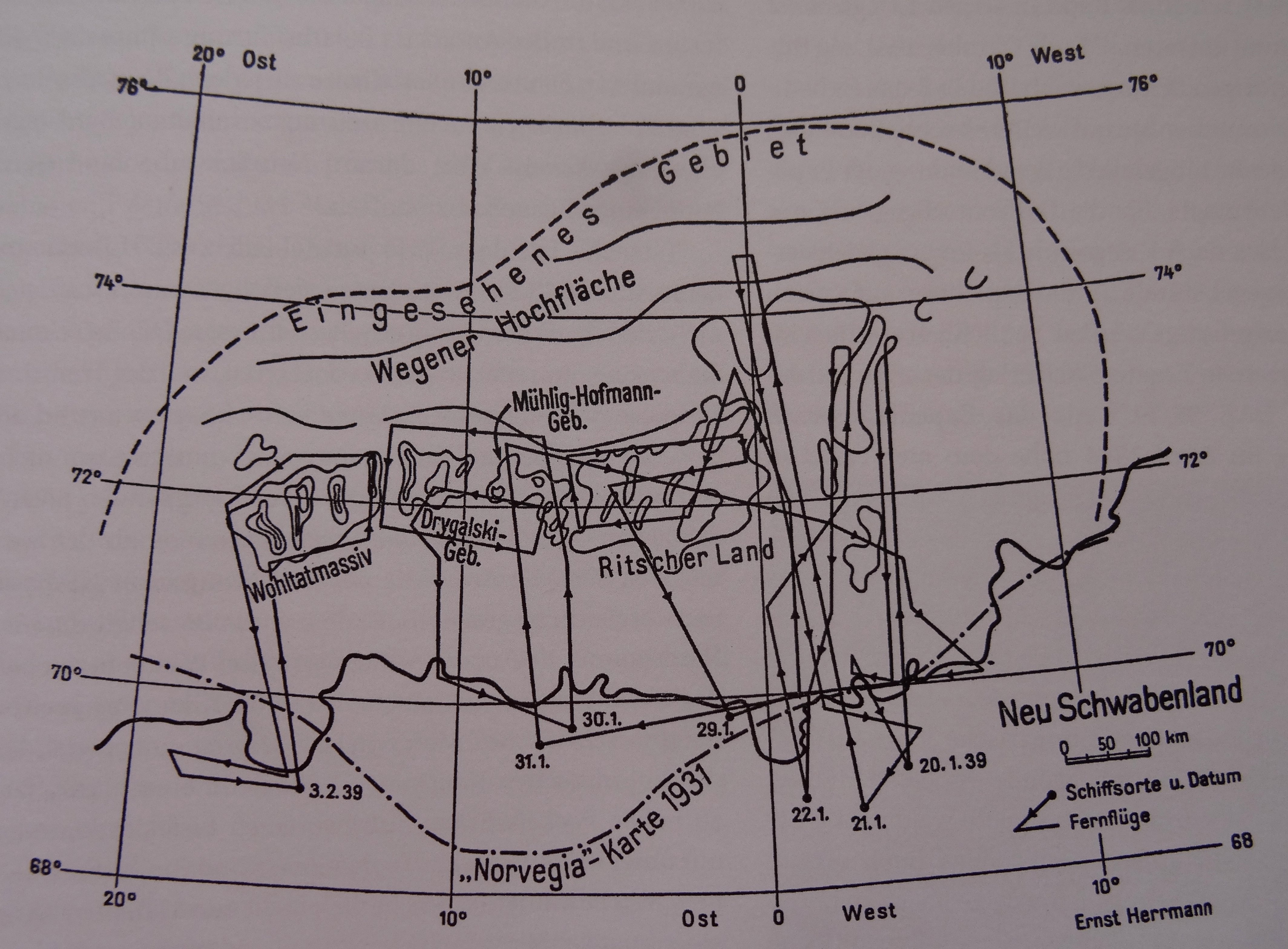 По итогам экспедиции участок Антарктиды площадью 600000 кв.км (между 12 гр.з.д.и 18 гр.в.д., 70 и 75 гр.ю.ш.) был объявлен принадлежащим Третьему рейху под именем "Новой Швабии".