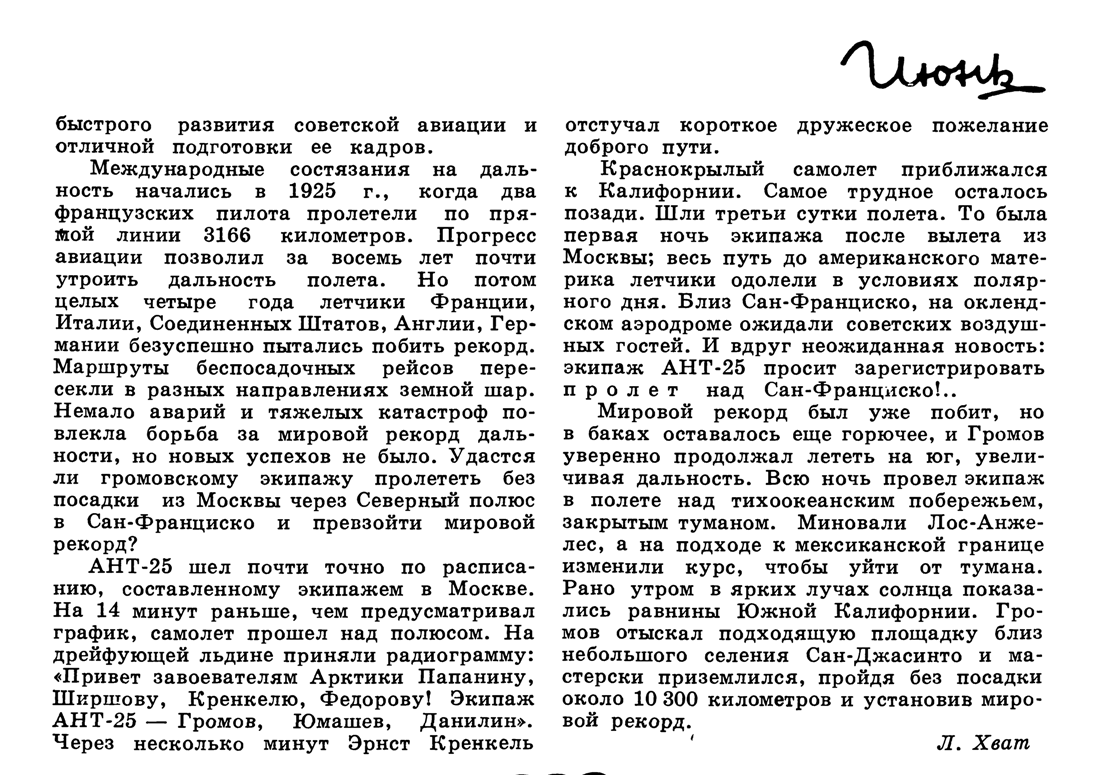 Хват Л.Впервые через полюс -в Америку//Земля и люди: Географический календарь на 1962 г. Москва: Географгиз, 1961 с.106-107