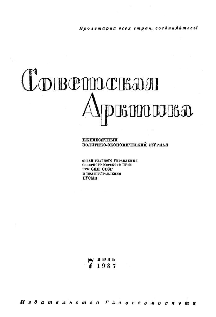 Журнал "Советская Арктика", ГУСМП, 1937, №12