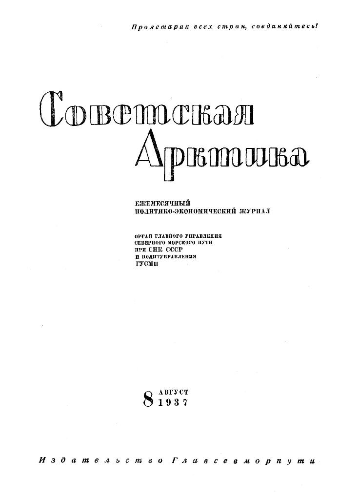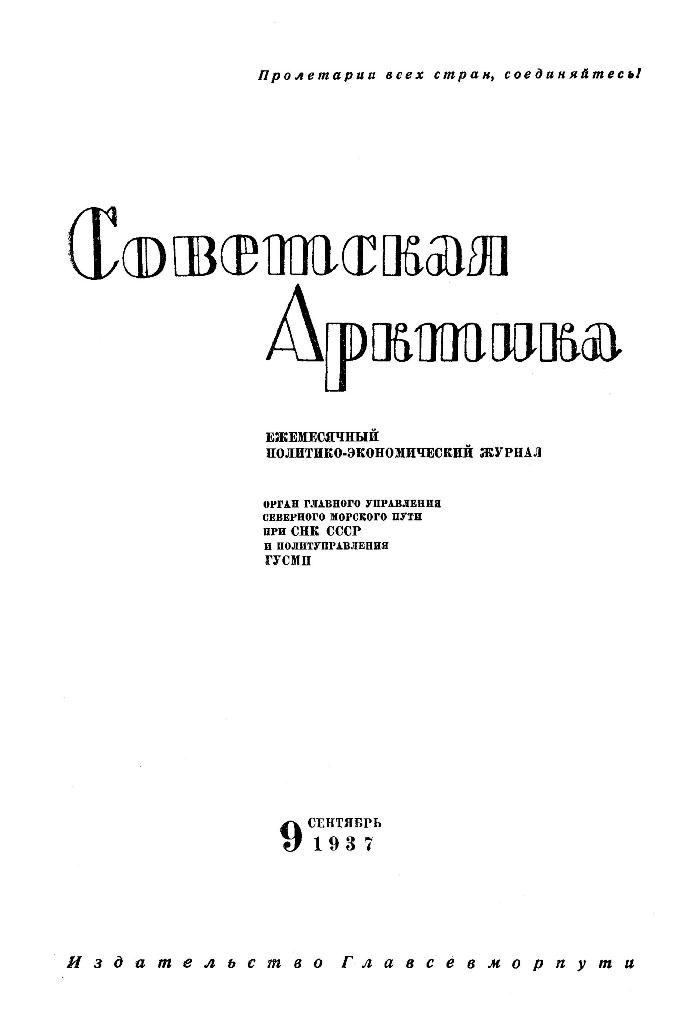 Журнал "Советская Арктика", ГУСМП, 1937, №10