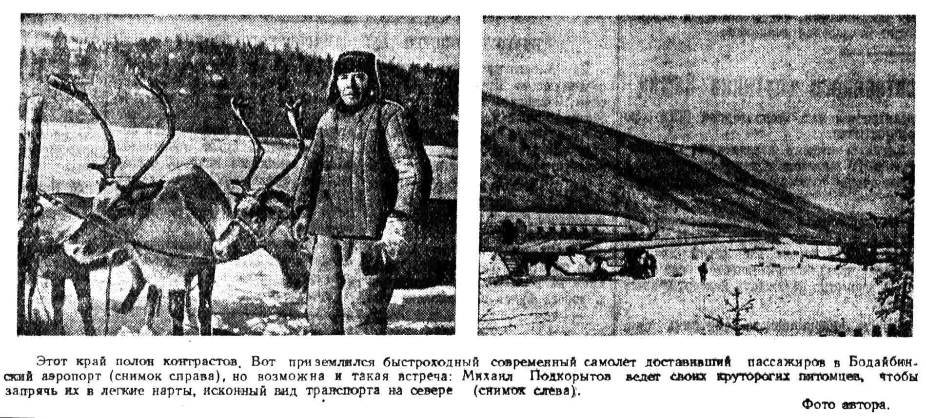 Детище же советской техники наших дней — самолет «ТУ-114 Д» — маршрут той же протяженности преодолел меньше чем за 13 часов и шел в стратосфере, оставляя далеко внизу все перепетии погоды...