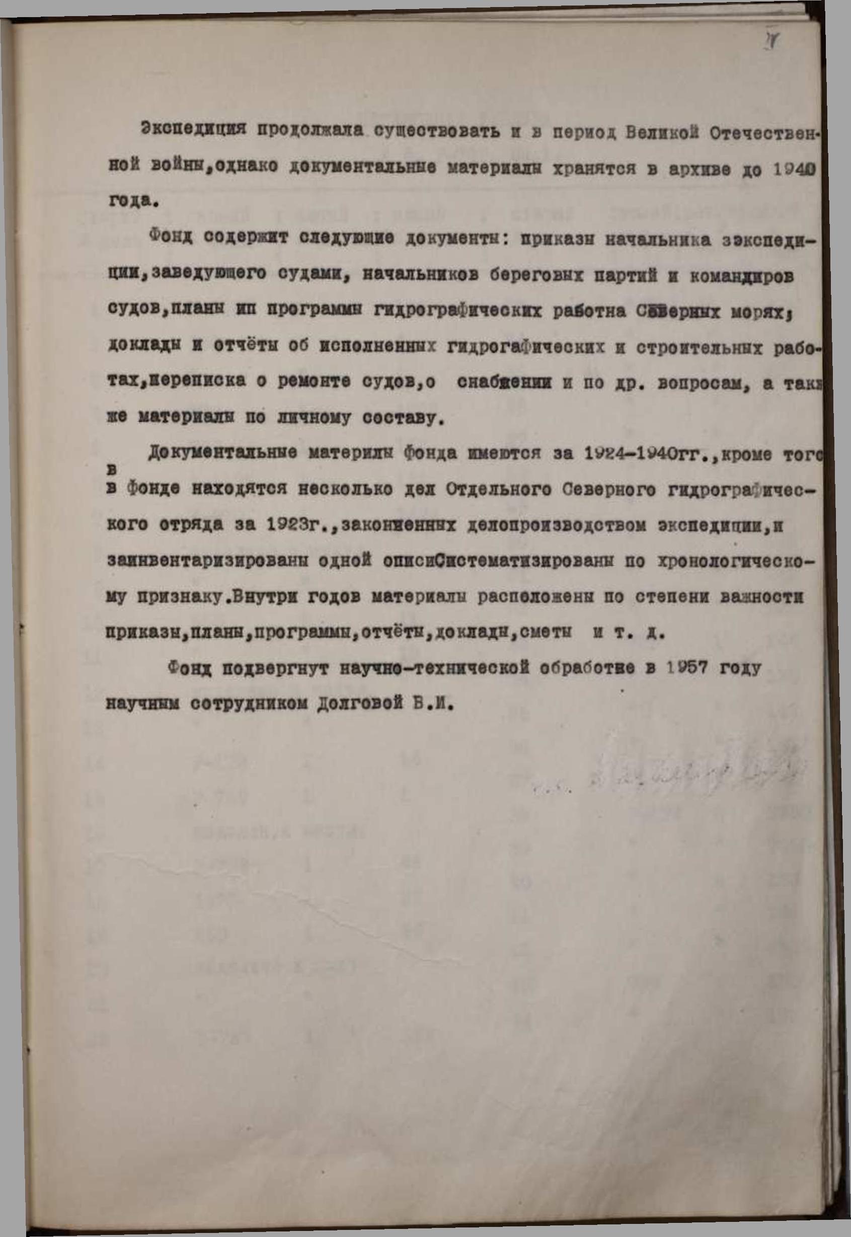 Фонд подвергнут научно-технической обработав в 1957 году научным сотрудником Долговой В.И.