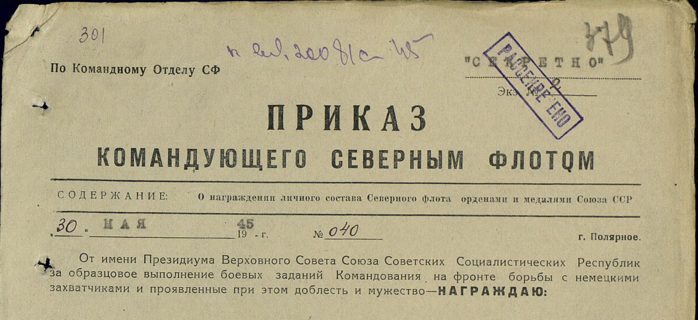Приказ флота (флотилии) № 44 от 07.06.1945 СФ