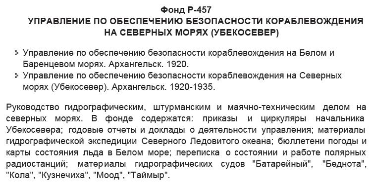 К фонду р-457 "Управление по обеспечению безопасности кораблевождения на Северных морях (УБЕКОСЕВЕР)".