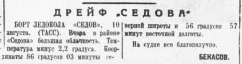 "Комсомолец Заполярья", 12 июня 1939 г. №80: „СЕДОВ" БЫСТРО ПРОДВИГАЕТСЯ НА ЗАПАДБОРТ ЛЕДОКОЛА «СЕДОВ», 10.