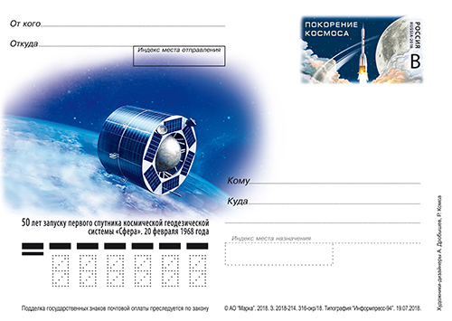 № 316/окр. Серия «Покорение космоса». Космическая геодезическая система «Сфера»