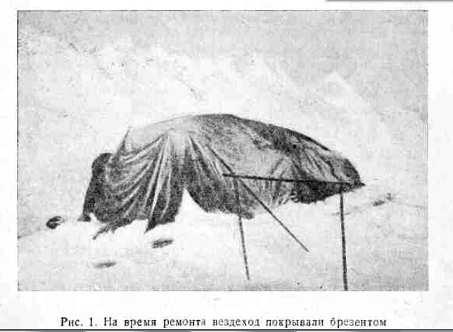 Обстоятельства заставили нас вновь обратиться к вездеходу, так как другие транспортные средства для нас были недоступны. Общими усилиями производили мы ремонт вездехода, смену отдельных частей. С большой любовью готовили мы вездеход к предстоящим походам.