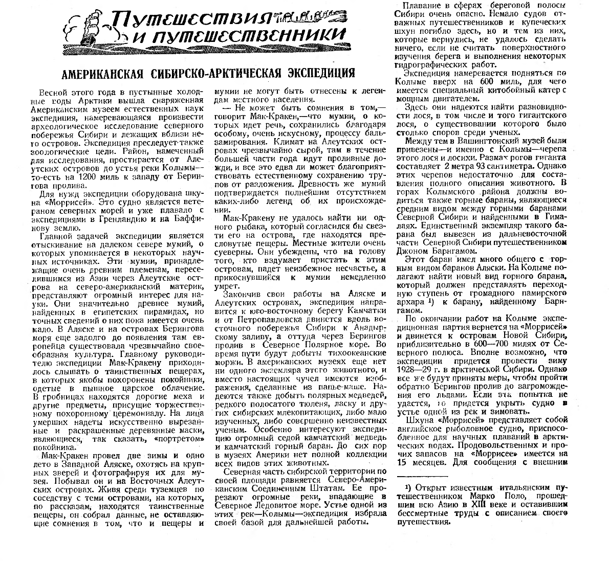 Американская сибирско-арктическая экспедиция//Вокруг Света 1928 г. №21 с.335-336
