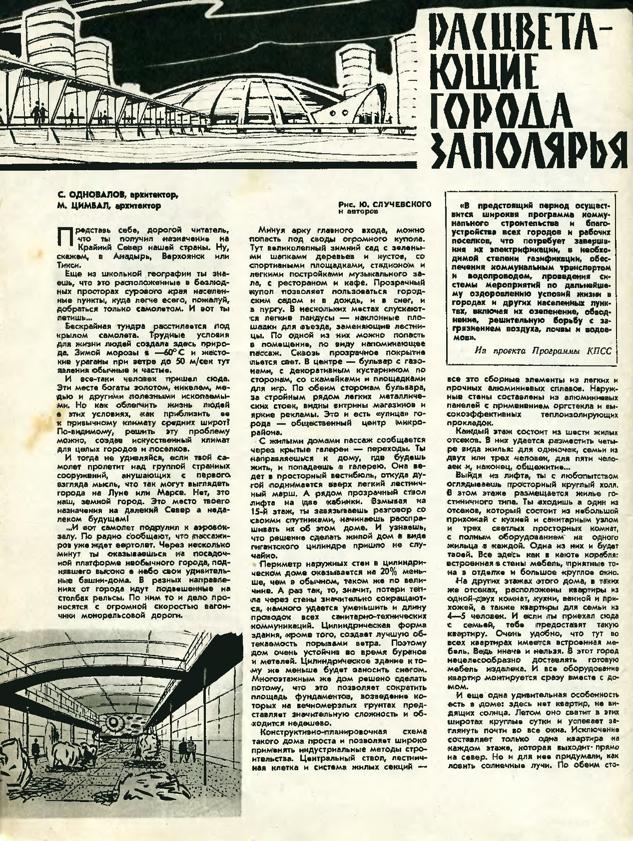 Т.С. Одновалов, М. Цимбал, архитекторы. Расцветающие города Заполярья//Техника - молодёжи №9 1961