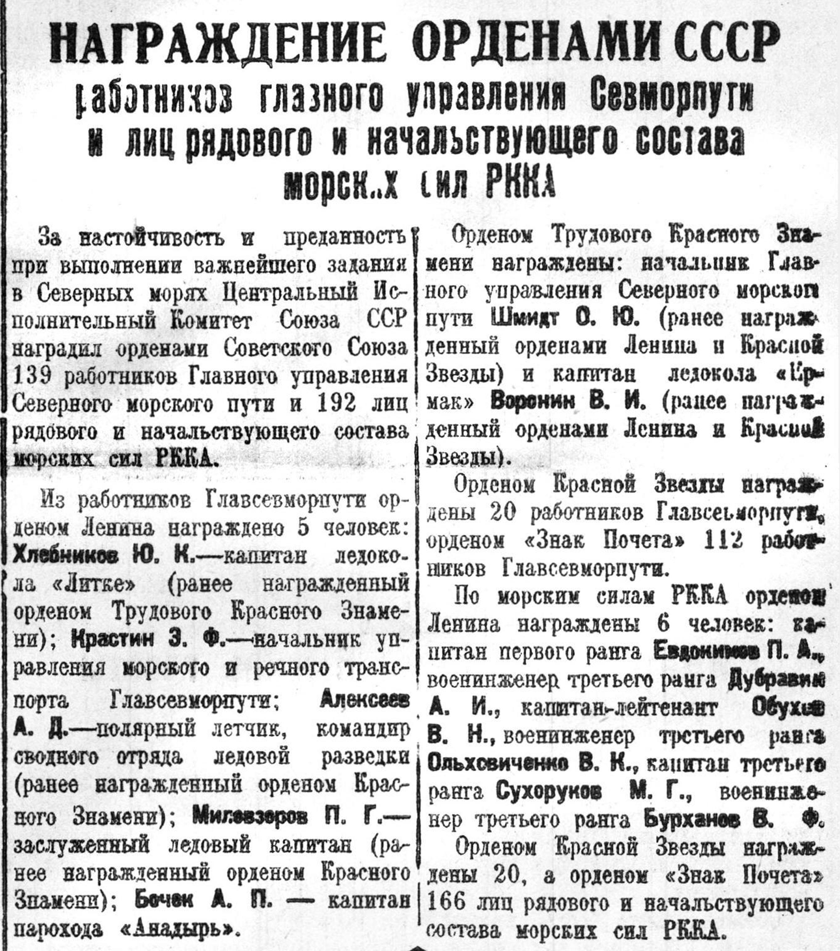 В ответной телеграмме правительства было сказано: «Ваша большевистская победа в Арктике имеет большое значение для дела обороны страны и является новым сильным призывом ко всем трудящимся Советского Союза преодолевать все и всякие трудности в борьбе за социализм».