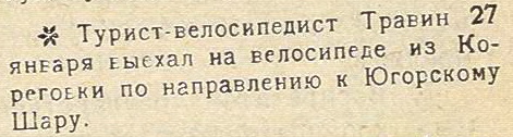 Около трех лет назад выехал он на велосипеде из Пскова на Ленинград, Вятку, Владивосток, Камчатку, через Японию, южной полосой вдоль китайской границы на Монголию, по Сибири, Туркестану, на Каспий, Кавказ, в Крым, на Украину, в Белоруссию, Карелию, Лапландию, оттуда на Архангельск, Пинегу, Вайгач и теперь вот в Хабарово.