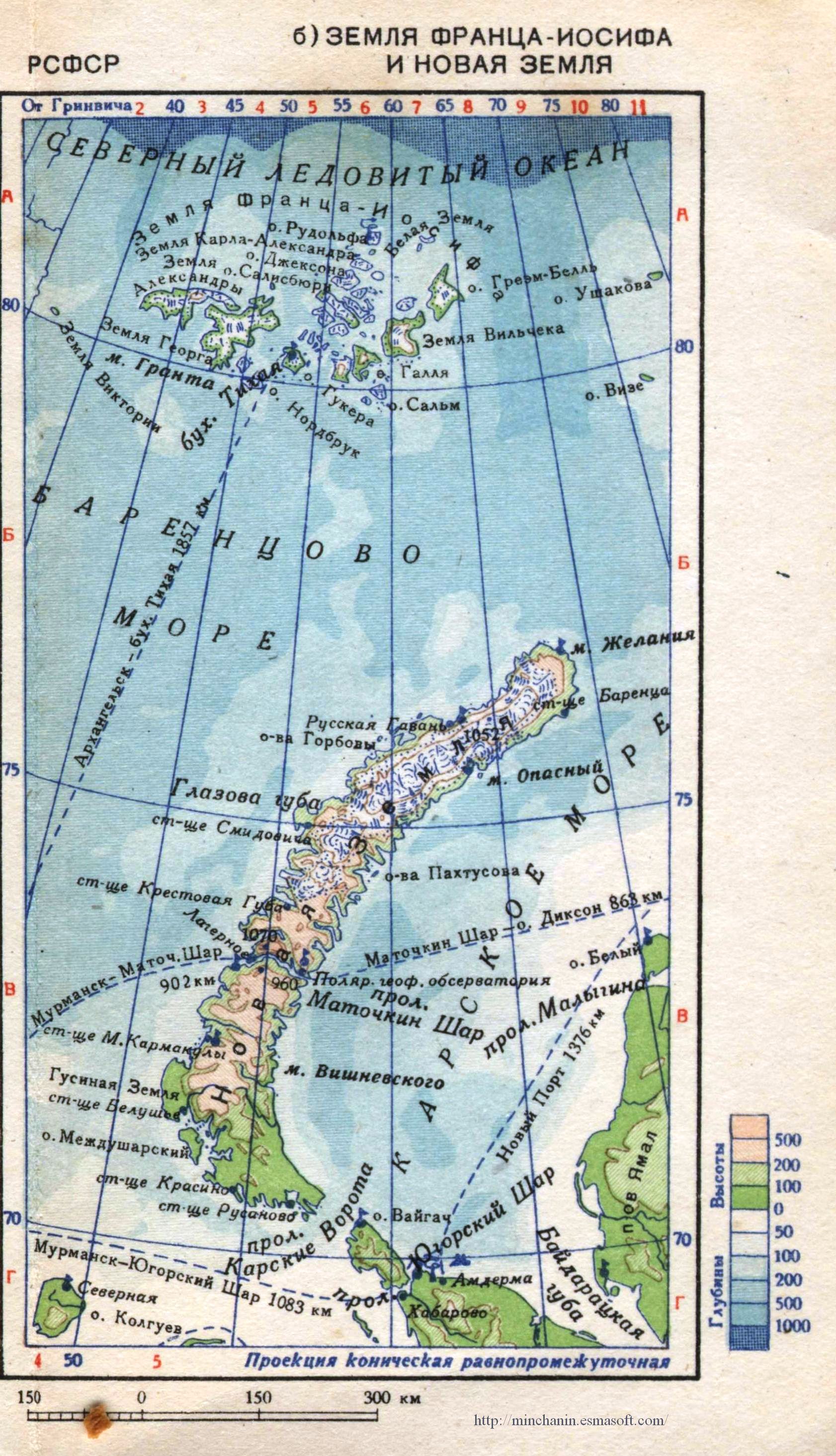 Северная кромка материка охватывает на карте пространство между современными полуостровами Рыбачий на западе и Югорский на востоке с ближайшими островами Колгуев, Вайгач, а также южное побережье Новой Земли без малейших попыток отразить ситуацию в глубине суши.