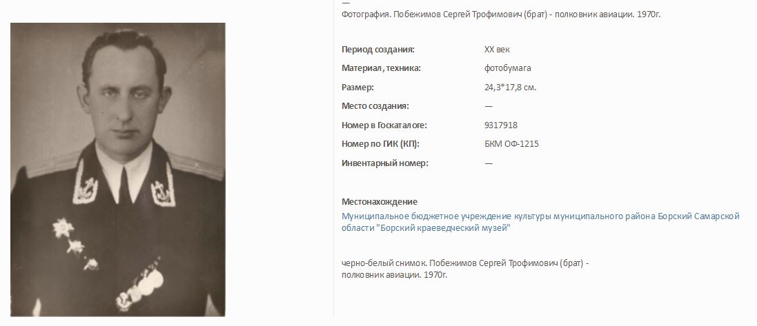 Представляется, что у брата Григория Трофимовича ошибочно в музее указали воинское звание полковник. На самом деле он был майором, но служил в морской авиации.